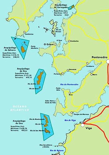 El Parque Nacional Marítimo Terrestre de las Islas Atlánticas de Galicia, es el primer y único espacio con esta categoría de la comunidad autónoma, comprende los archipiélagos de Cortegada, Sálvora, Ons y Cíes y el espacio marítimo que los rodea, constituyendo esta franja marina el 86% de la superficie total protegida, lo que nos da una idea clara de la importancia del medio marino en este espacio protegido.